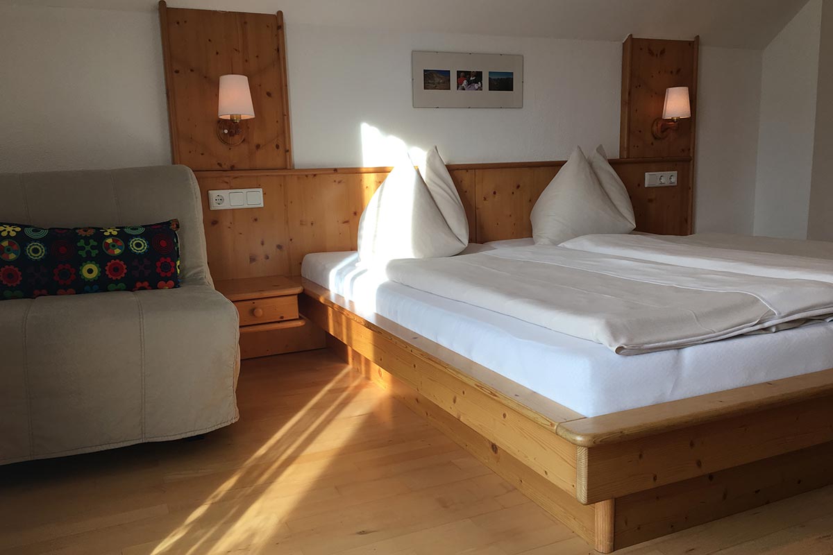 Alle Zimmer sind Nichtraucherzimmer, sehr komfortabel mit Vollholzmöbeln eingerichtet (heimische Fichte), ausgestattet mit Parkettboden. Die Balkone gehen in alle Himmelsrichtungen.