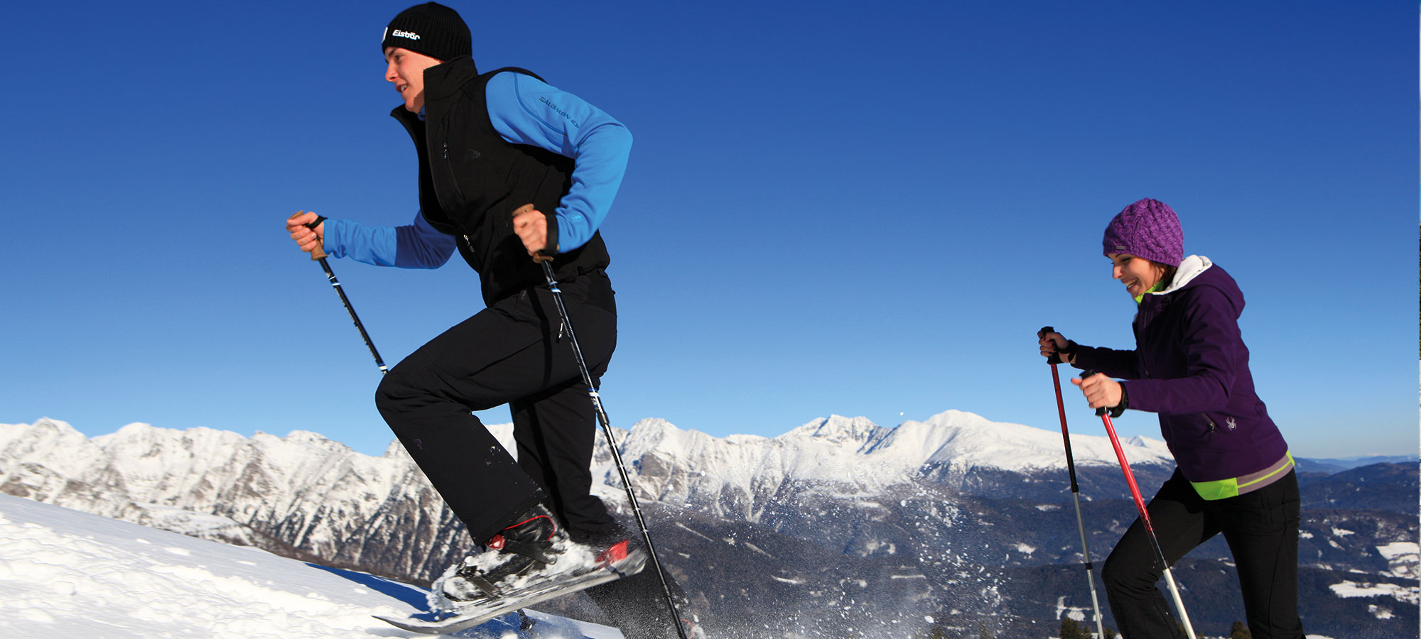 Aber Vorsicht - Schneeschuhwandern will auch gelernt sein. Man kommt nahezu mühelos jede Steigung hinauf, jedoch ebenso sicher wieder hinunter, wenn man die Schritte richtig gesetzt hat.